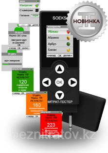 СОЭКС Нитрат-тестер 2 — узкоспециализированная модель, непосредственно измеряющая только содержание опасных веществ в продуктах. Метод ионометрии биопродукта позволяет безошибочно определять уровень опасности, точность измерений сравнима с лабораторными исследованиями. Удобство состоит в наличии готового списка продуктов, высокой скорости измерений, интуитивно понятной цветовой индикации результатов.